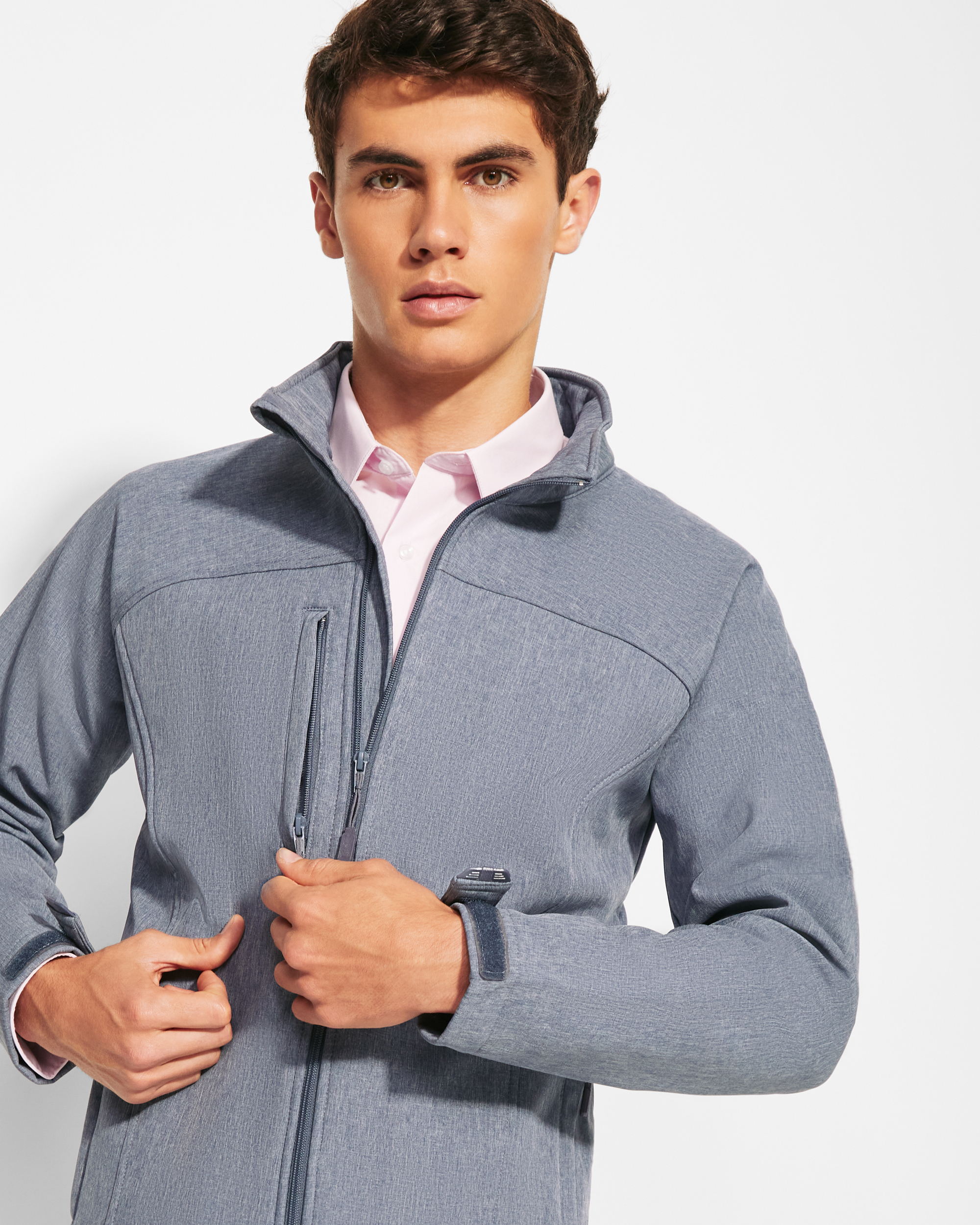 Softshell compuesto por 3 capas, con cremallera completa con protector de barbilla y tirador. Cuenta con un bolsillo exterior de pecho derecho con cremallera y tirador, y bolsillos exteriores con cremallera y tirador. Ajustadores en puños con velcro. Corte o canesú en la zona del pecho delantero. Corte o canesú en la espalda. Bajo con cordón elástico y topes ajustables en el interior.