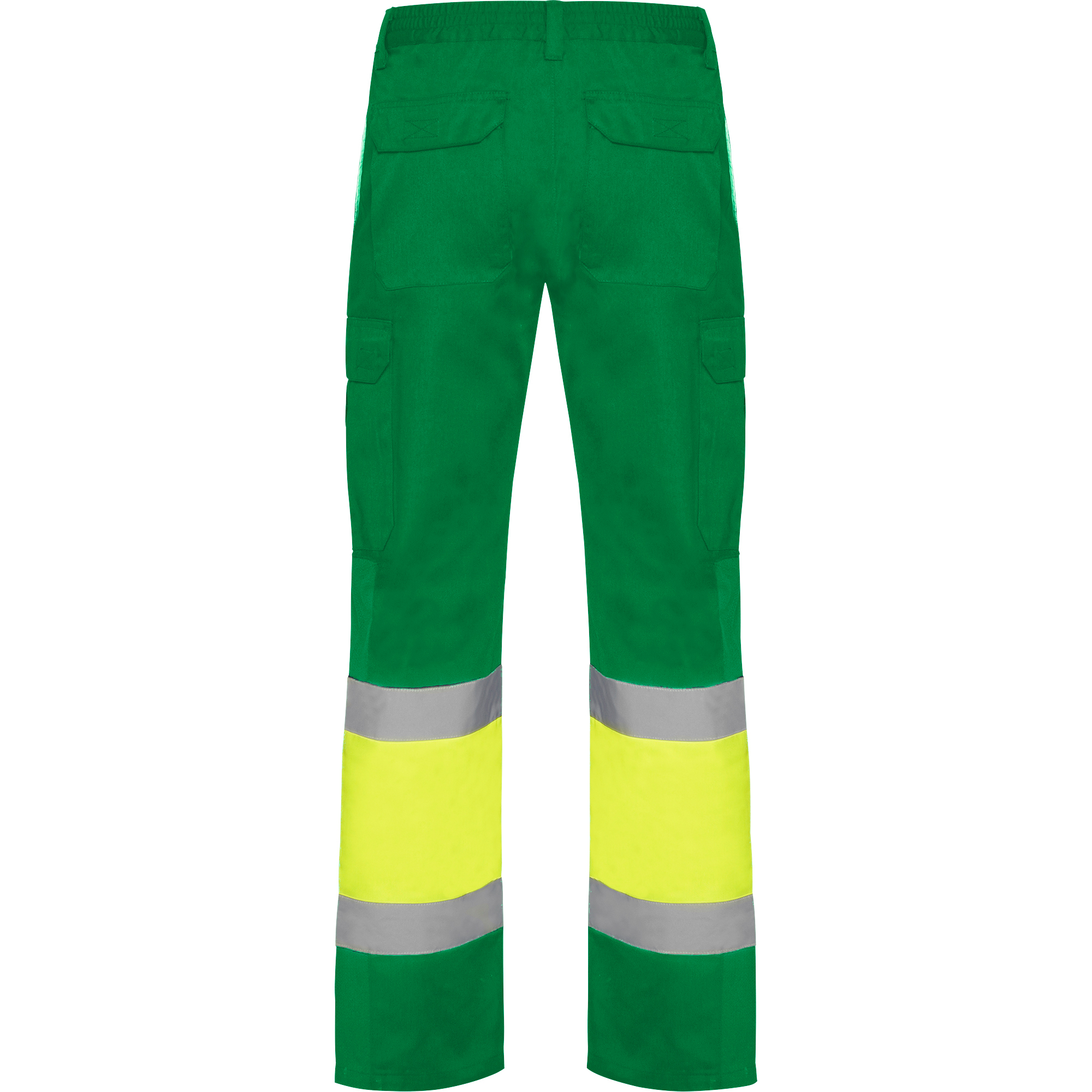 Pantalón largo de visibilidad nocturna con tejido resistente. · Cinturilla ajustable elástica en la parte trasera. · Dos bolsillos frontales.