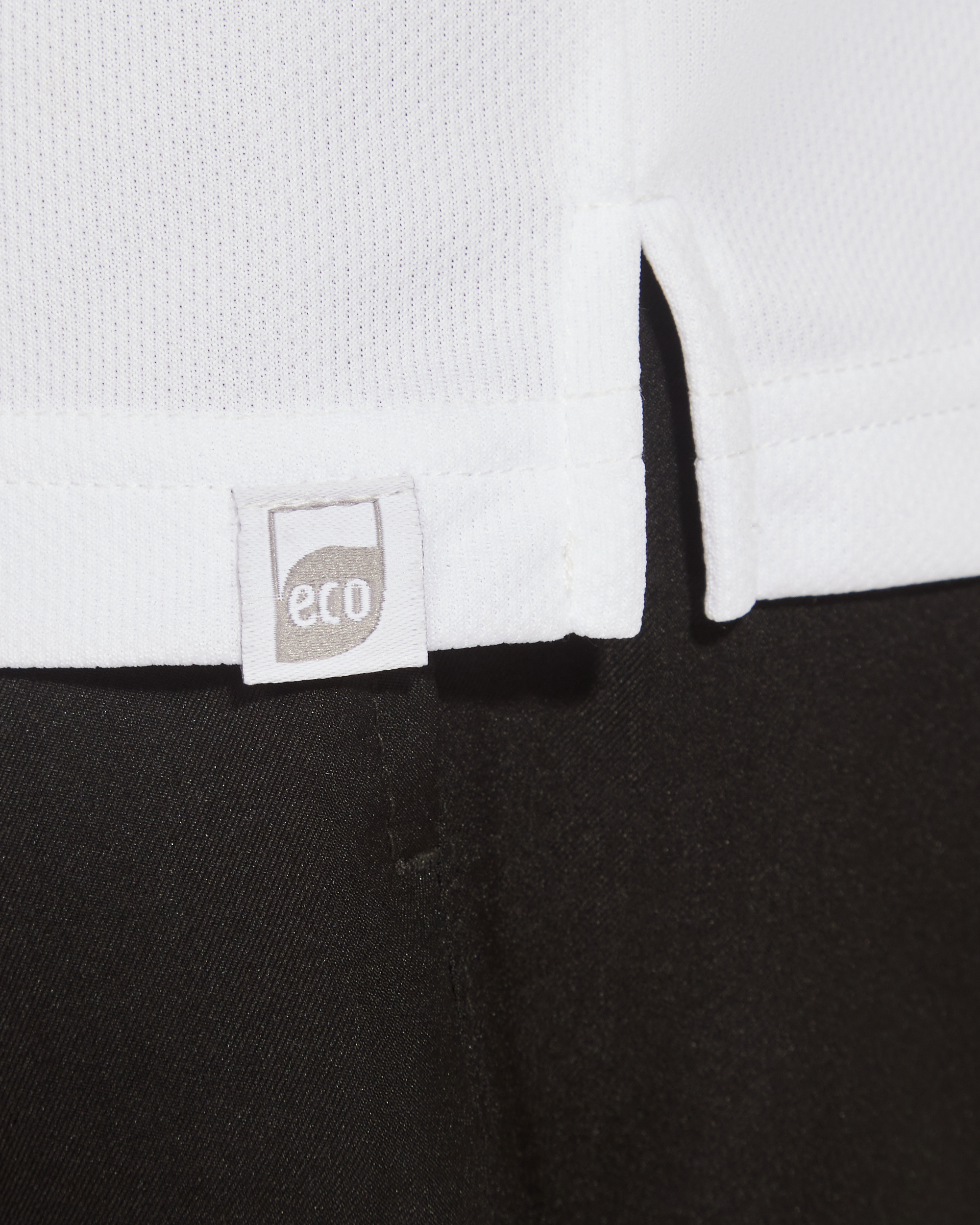 Polo técnico de manga corta para hombre en poliéster reciclado antibacteriano. Cuello y detalle ribete de mangas en canalé 1×1. Cubrecosturas reforzado en cuello. Tapeta con 2 botones automáticos ocultos. Piezas de hombros y detalles a contraste. Aperturas laterales en el bajo.