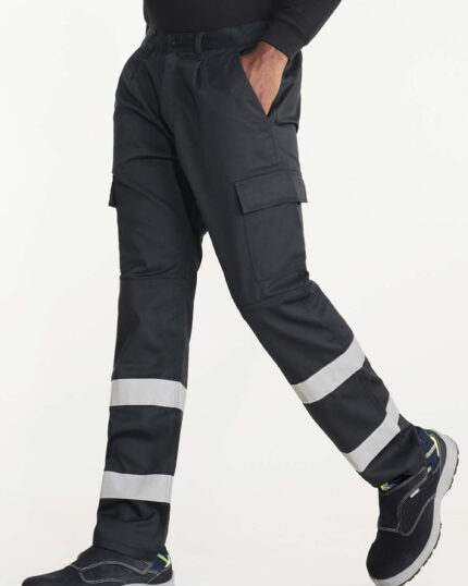 Pantalón largo multibolsillos de alta visibilidad. · Tejido cómodo y flexible. · Cintura ajustable elástica en la parte trasera. ·