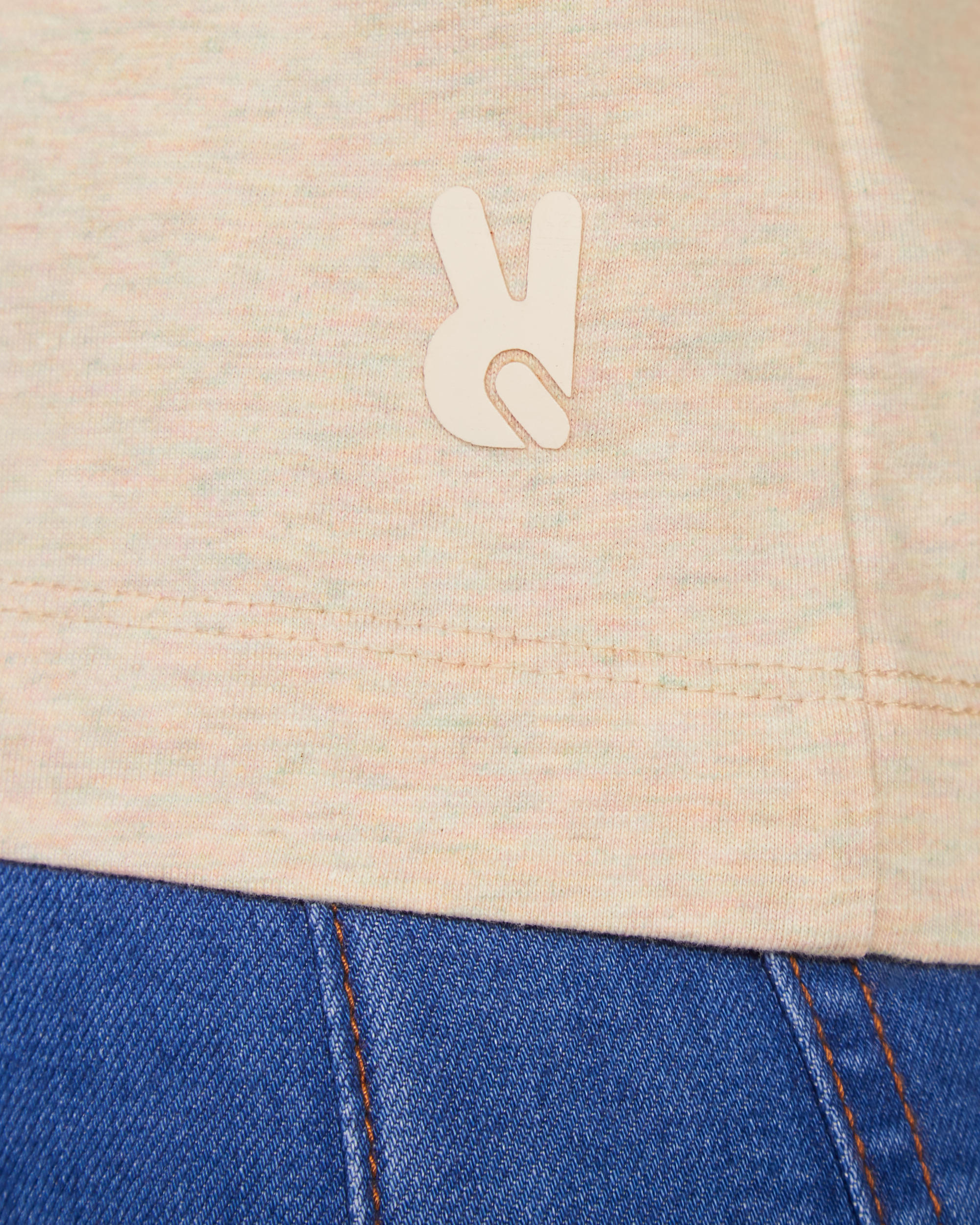 Camiseta gruesa de mujer en manga corta de algodón. Cuello redondo y ribete mangas en canalé ancho 2×1. Cubrecosturas reforzado en cuello. Costuras laterales. Logo Roly a tono en bajo lateral izquierdo. Costura ancha en el bajo.
