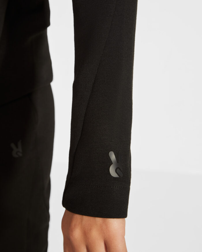 Camiseta técnica multideporte para mujer con manga ranglán. Cuello pico. Tejido poliéster con tacto algodón. Corte entallado. Bajo con forma