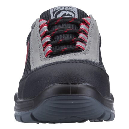Zapato de seguridad Flexor gris de J’hayber Works. Calzado de seguridad gris con contrastes y detalles rojos, ligero y flexible,