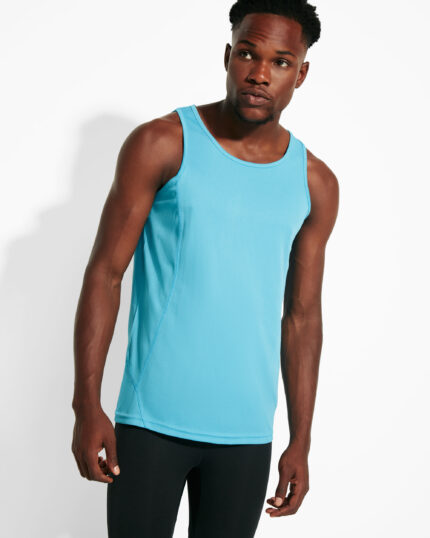 Camiseta técnica de tirantes. Costura angular para mejorar adaptación.Composición: 100% poliéster piqué, 140 g/m².Observaciones: *Tejido transpirable de fácil lavado y